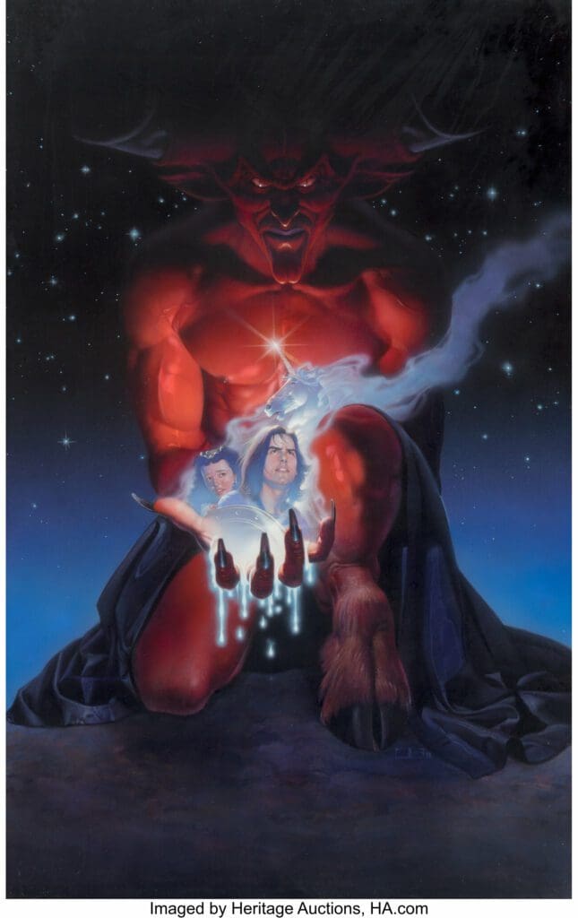 “Nous sommes également ravis de proposer l’exceptionnelle affiche originale de Thomas Blackshear pour le classique culte Legend de 1985, qui mettait en vedette un Tom Cruise et une Mia Sara extraordinairement jeunes, ainsi qu’un Tim Curry entièrement costumé et maquillé dans le rôle du Seigneur des Ténèbres”, déclare Meagen McMillan, directrice principale de l’illustration. “Chez Heritage, nous aimons notre histoire du cinéma, et cela se voit.”